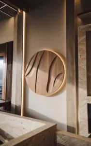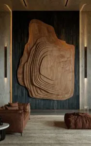 Arte mural en madera maciza · Relieve escultórico